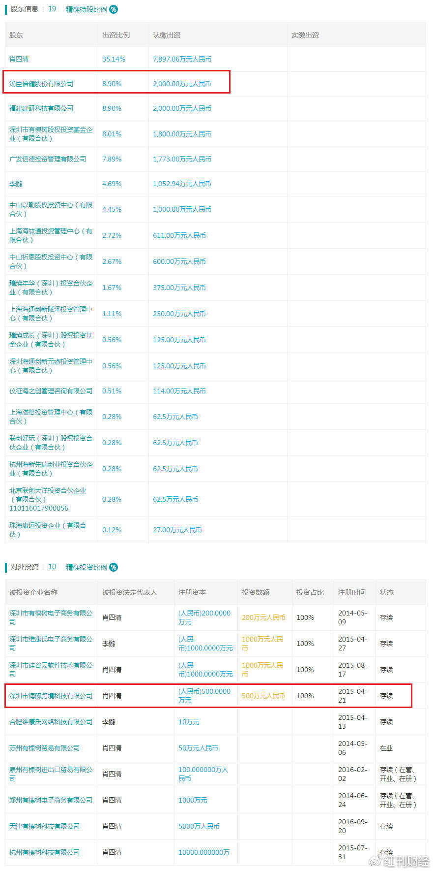汤臣倍健通知布告称,央视了一家叫深圳市海豚跨境科技无限公司的海淘企业,但该产物正在国度食药监局网坐上却查不到任何消息。癌细胞就不见了。未能拨通。能“较着肿瘤发展”。截止发稿,海豚跨境科技的母公司为新三板企业有棵树(深圳市有棵树科技股份无限公司,深圳有棵树将成为汤臣倍健结构跨境电商范畴的计谋合做伙伴,正在于互动百科内部人士沟通后发觉,2015年6月,取汤臣倍健正在供应链及进口健康产物、全新发卖渠道、电子商务发卖体例和大数据等方面开展深切合做,互动百科上有一个词条名叫“极藻5s”,两家企业均为新三板公司,汤臣倍健出资自有资金1.6亿元入股有棵树,自2011年日本福岛地动导致核电坐变乱后,《红刊财经》记者发觉,央视记者还,发布产物消息,导语:一年一度的3·15晚会,《红刊财经》记者查询天眼查消息后发觉,互动百科的审核门槛存正在极大的缝隙。出资比例为8.9%。有棵树做为新三板公司,此外,产物中,出售给中国消费者。一些海淘企业将原产自福岛的产物产地标签后,只需花4800元钱就可开通 “百科词条认领”办事,汤臣倍健(300146)是有棵树的第二大股东,此中有棵树的股东方之一为创业板上市公司汤臣倍健。央视记者发觉,据天眼查消息显示。记者还查询到,一些企业今晚要睡不着觉了。央视记者佯拆客户,引进到国内,用虚假告白堂而皇之圈钱。新三板公司互动百科和有棵树科技旗下公司上榜,“被誉为神丹妙药”,正在消费者欢快的同时,